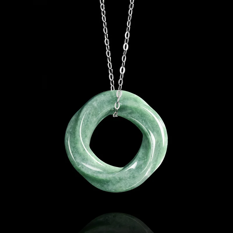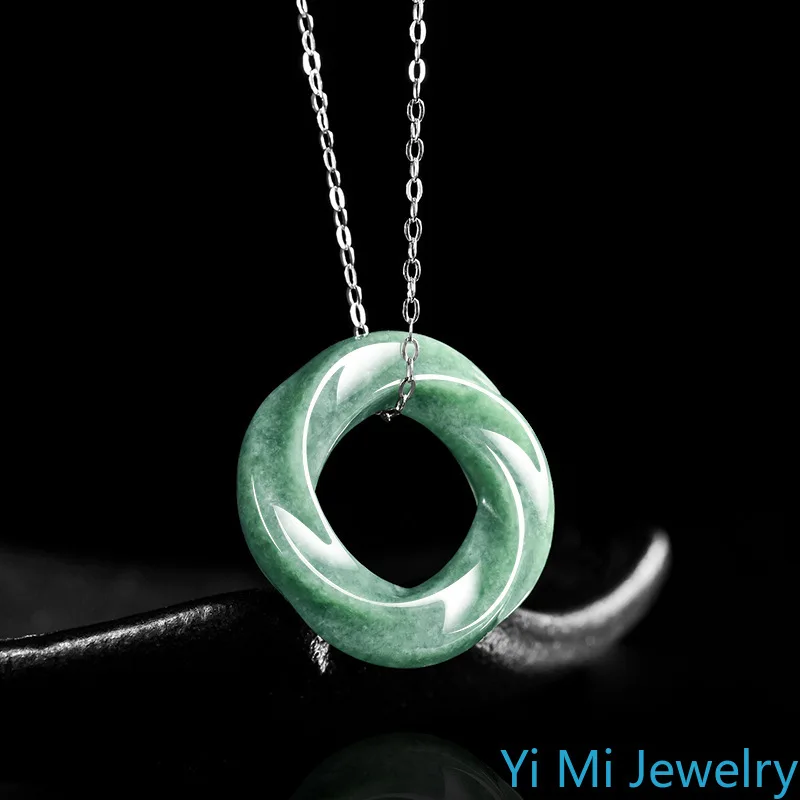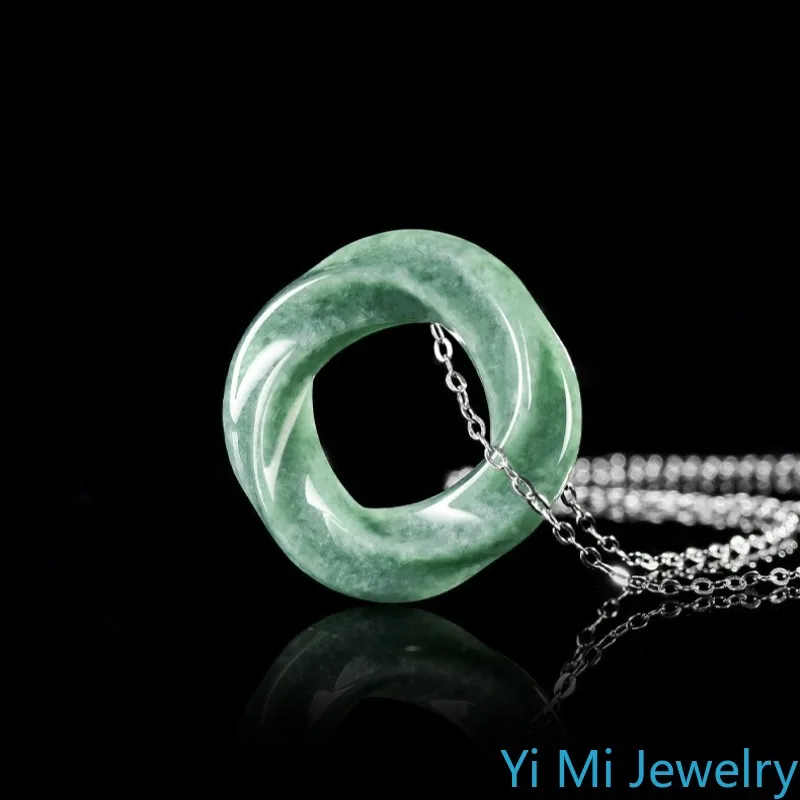 100% A-grade Jade Bean Green M Ö Bius Ring Pendant for Men and Women Eternal Symbol of Fashion Perfect Jewelry Festival Gift