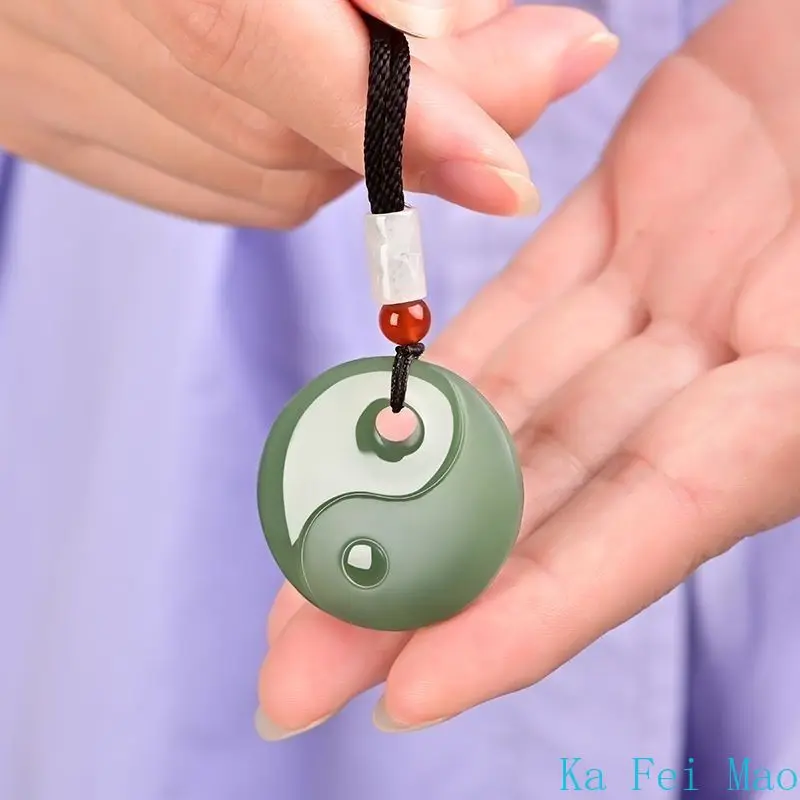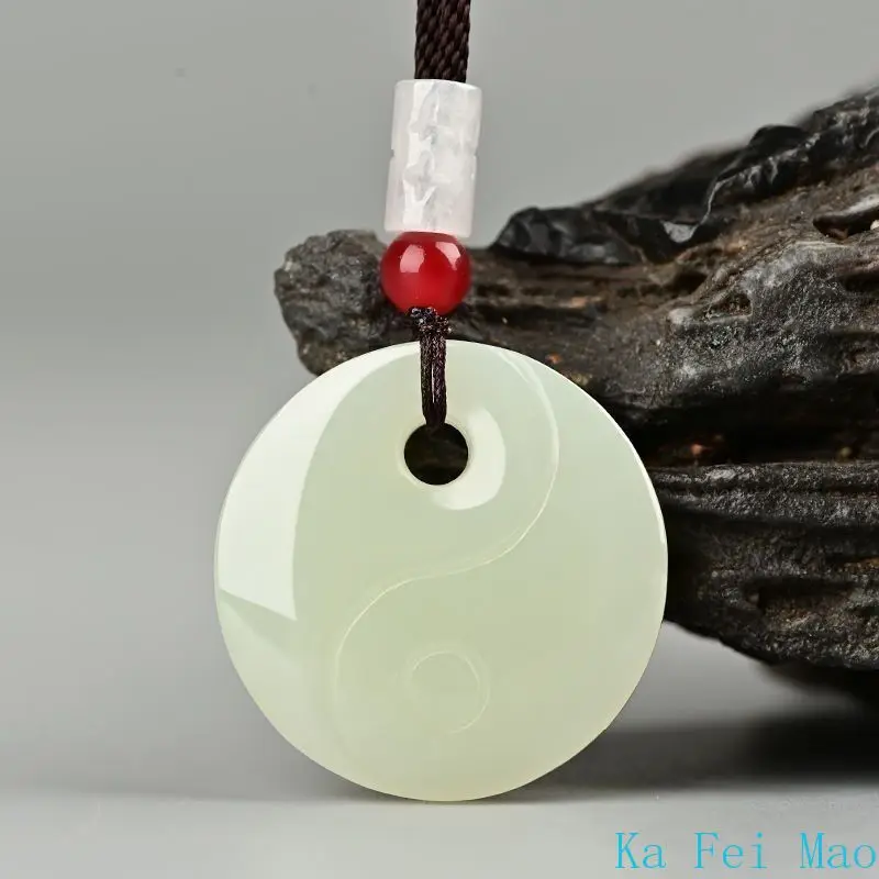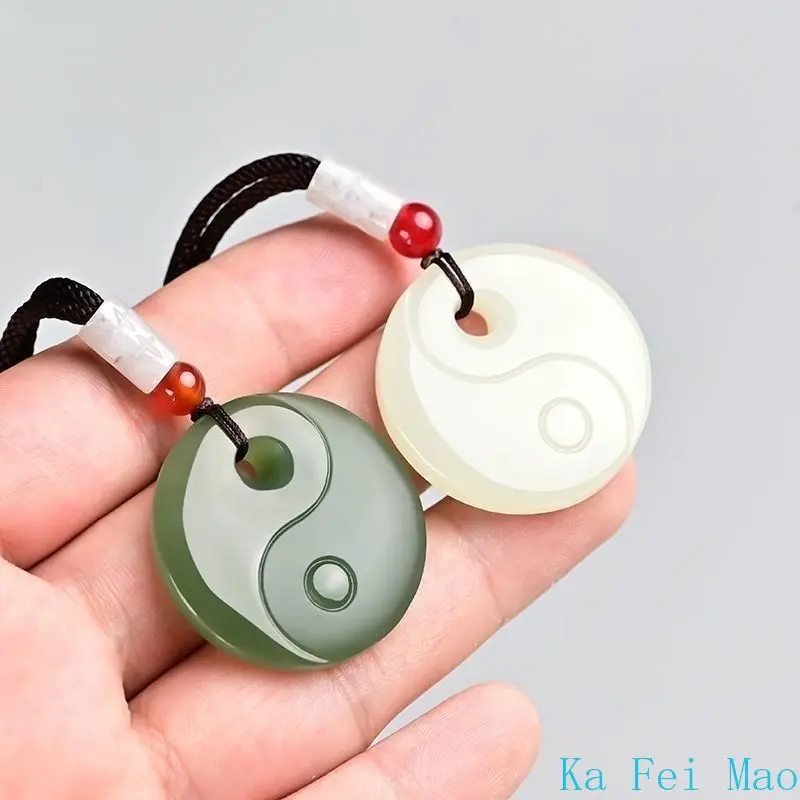 100% Natural Hotan Jade Pendant Tai Chi Bagua Heaven and Earth Pendant for Couples Necklace Pendant Fashion Feng Shui Jewelry