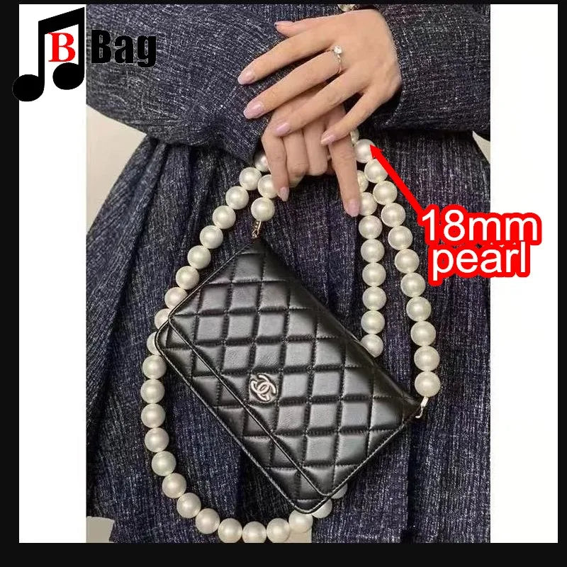 18mm Pearl Bag Strap pearl handbag strap Women Handbag Handles Replacement Handbags Strap Accessories phone bag decoration