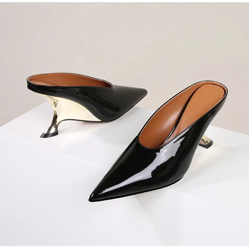 2024 New Design Fashion Platform Wedges High Heels Mule Women Slippers Concise Shallow Pointed Toe Party Dress Ladies Shoes