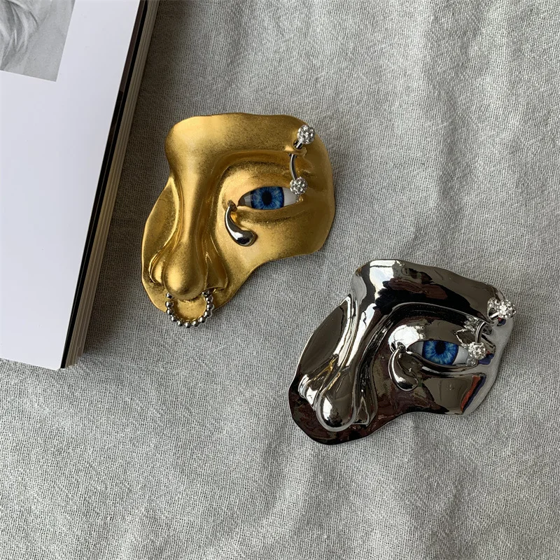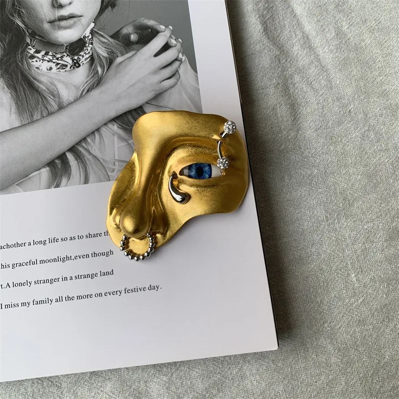 2024 New French Gold-Plated Face Brooch Vintage Fashion Suit Skirt Brooch Unisex Men's Women's Jewelry Accessories