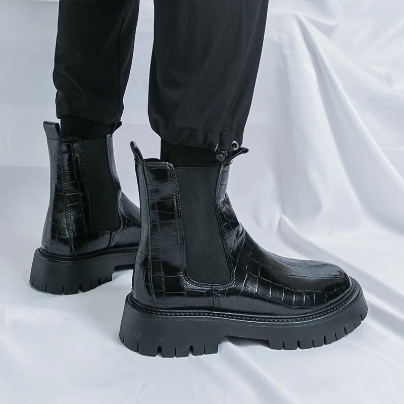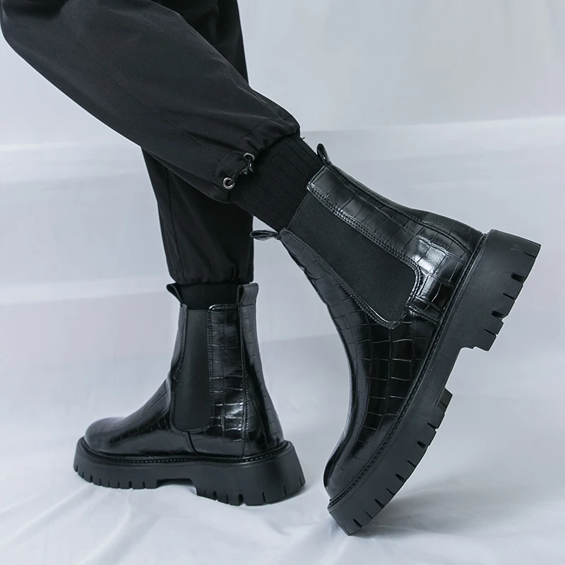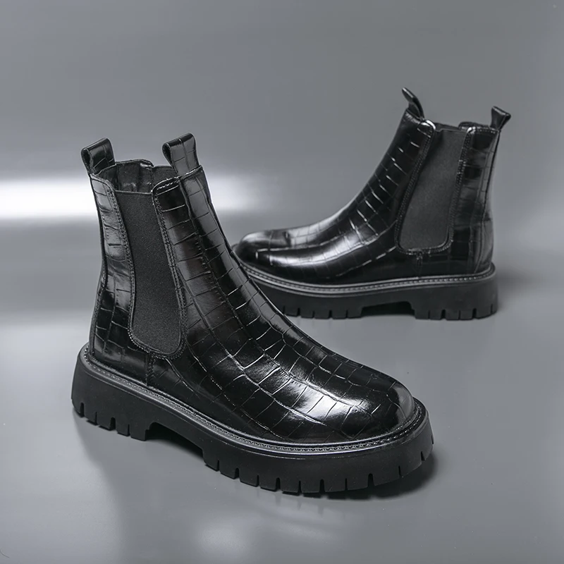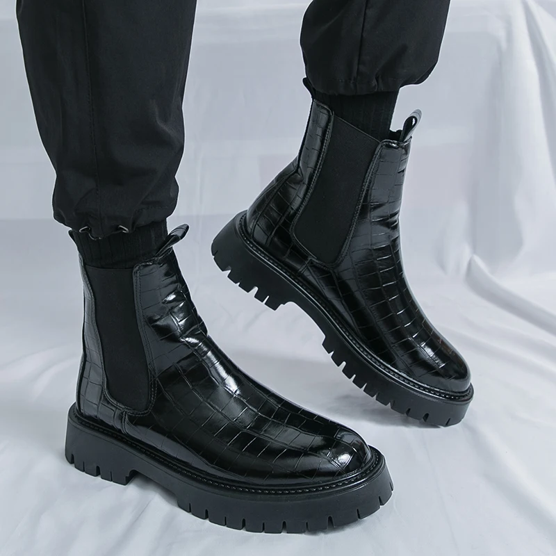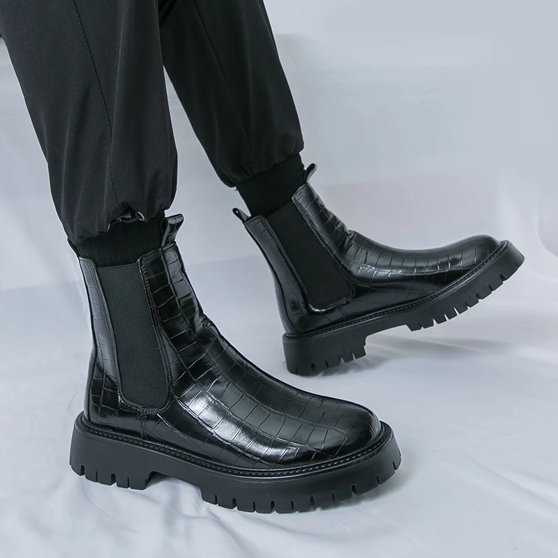 2025 Fashion Brand Men's Comfortable Fit Thick Soled Chimney Boots Autumn New High Top Chelsea Boots Plus Large Workwear Boots
