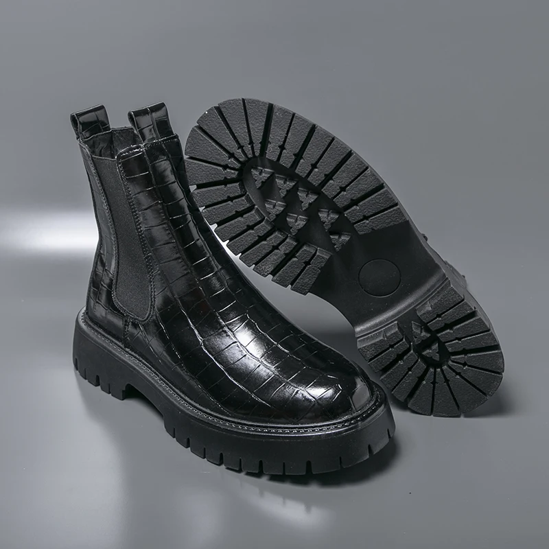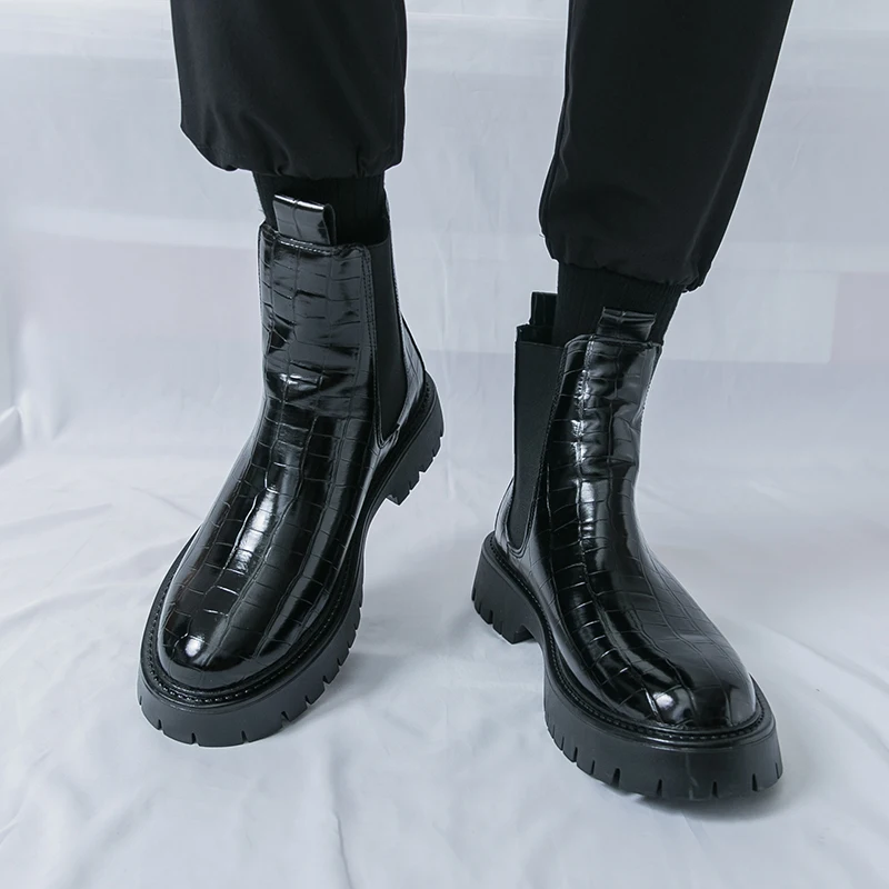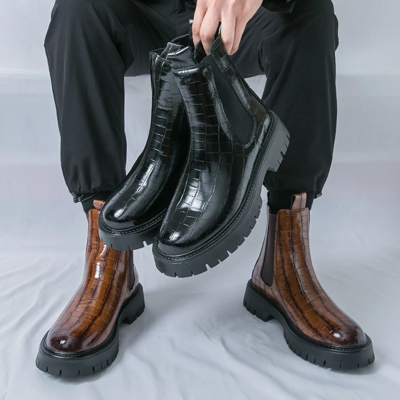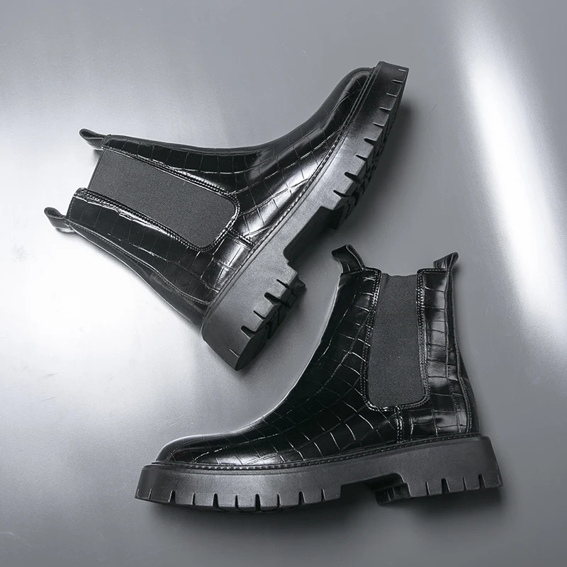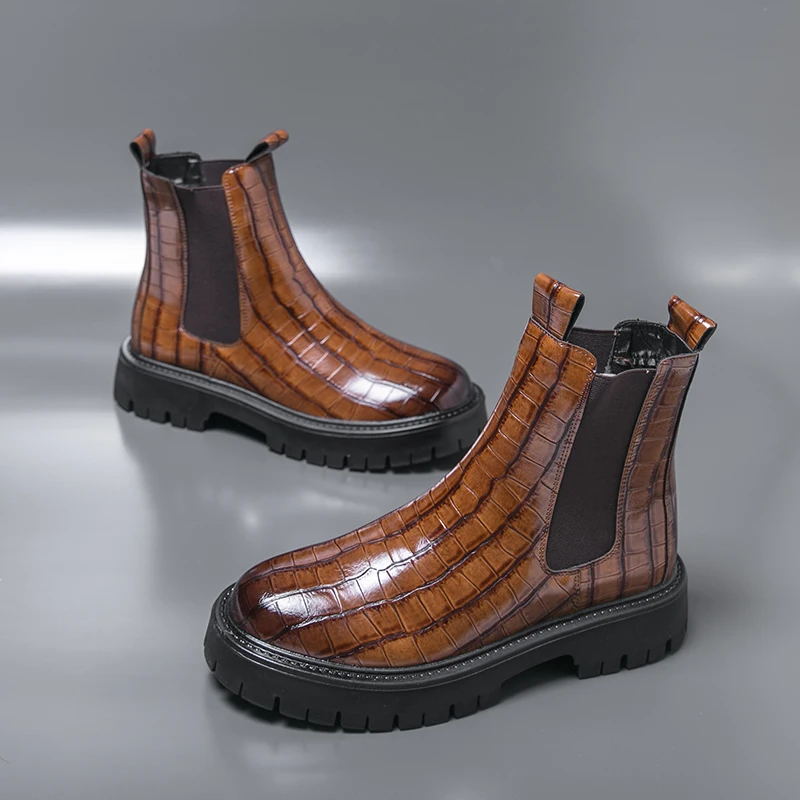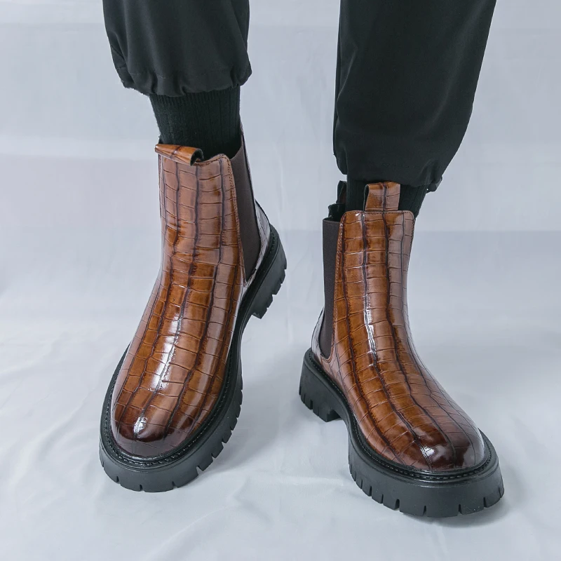 2025 Fashion Brand Men's Comfortable Fit Thick Soled Chimney Boots Autumn New High Top Chelsea Boots Plus Large Workwear Boots