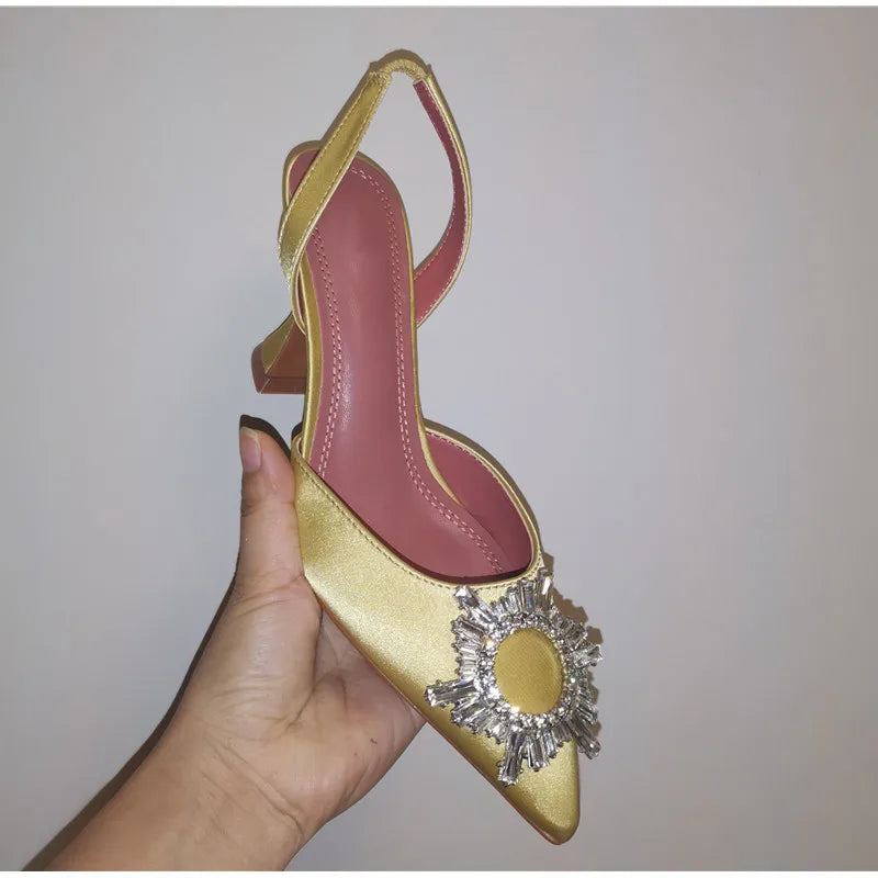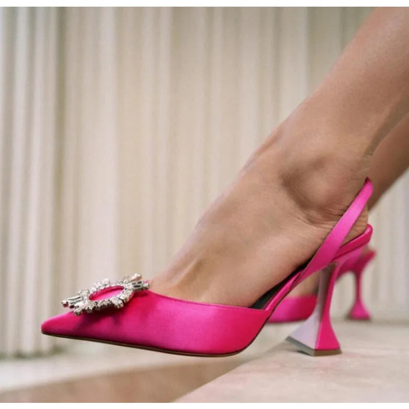 2025 Star style Women Sandals Elegant Pointed toe Slingback Summer Office Lady Shoes Fashion High heels Gladiator sandals Woman