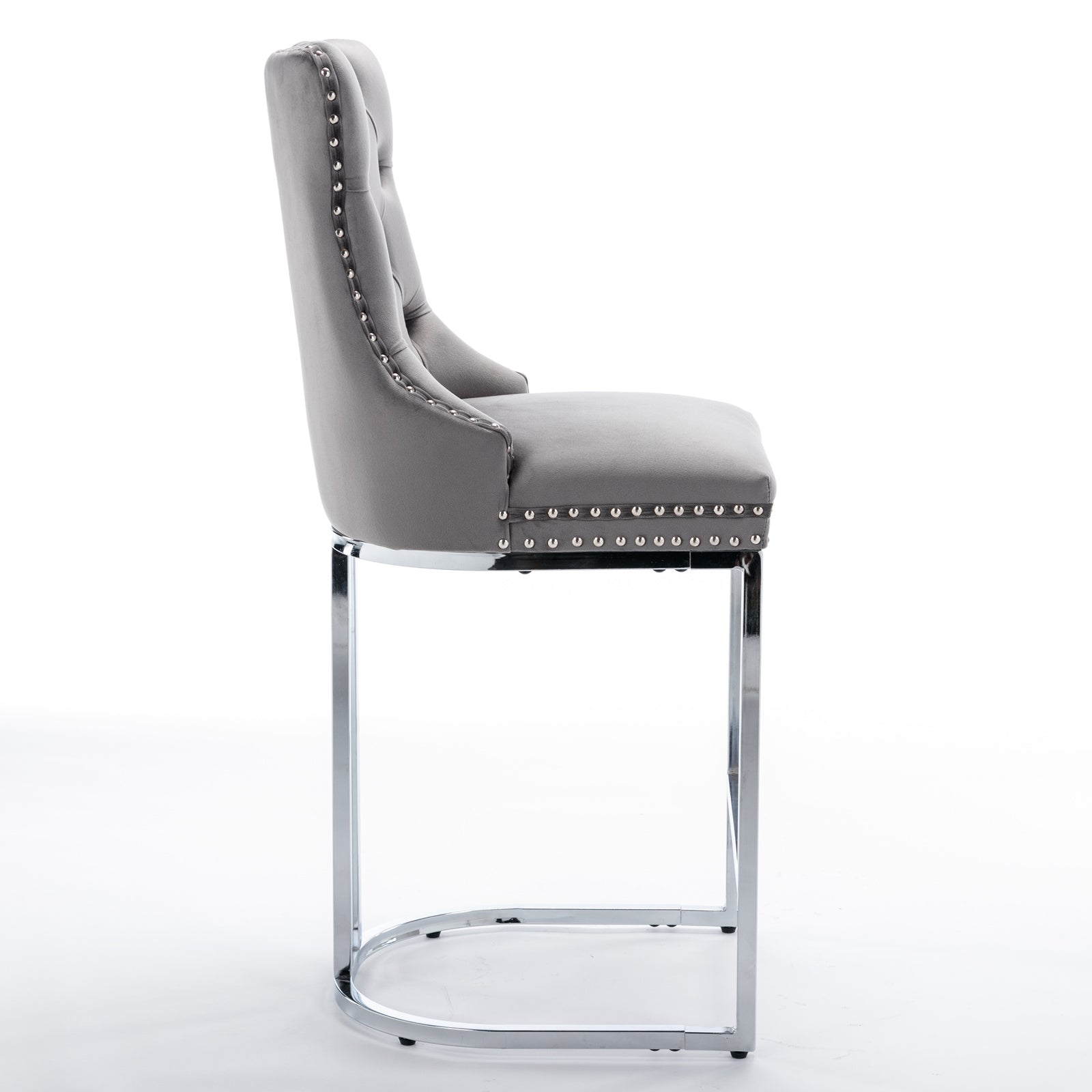 26 Counter Height Bar Stools Set Of 2, Modern Velvet Barstools With Button Back&Rivet Trim Upholstered Kitchen Island Chairs With Sturdy Chromed Metal Base Legs Farmhouse Bar Stools, Gray,2 Pack