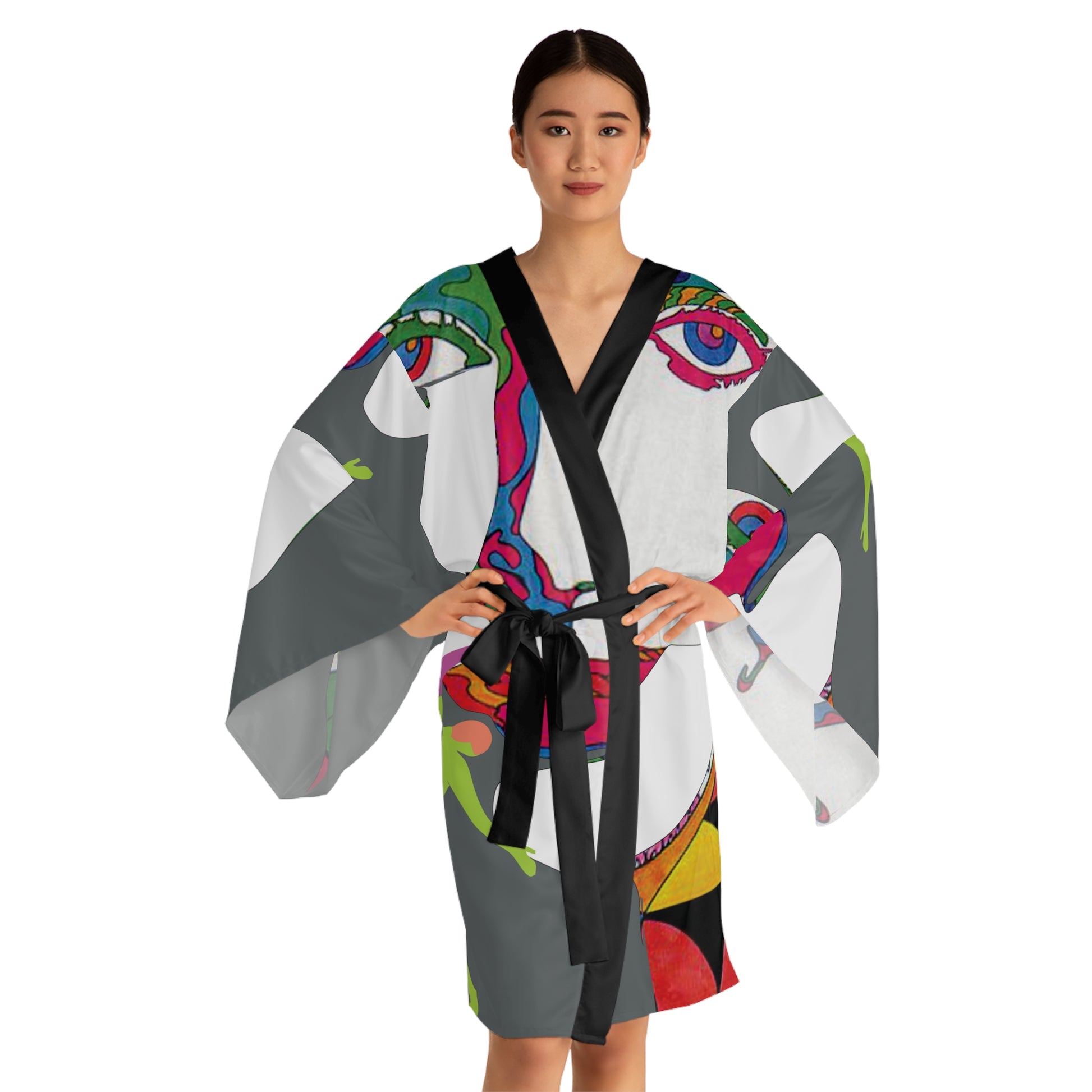 Long Sleeve SOLSTICE black POP ART Kimono Robe (AOP)