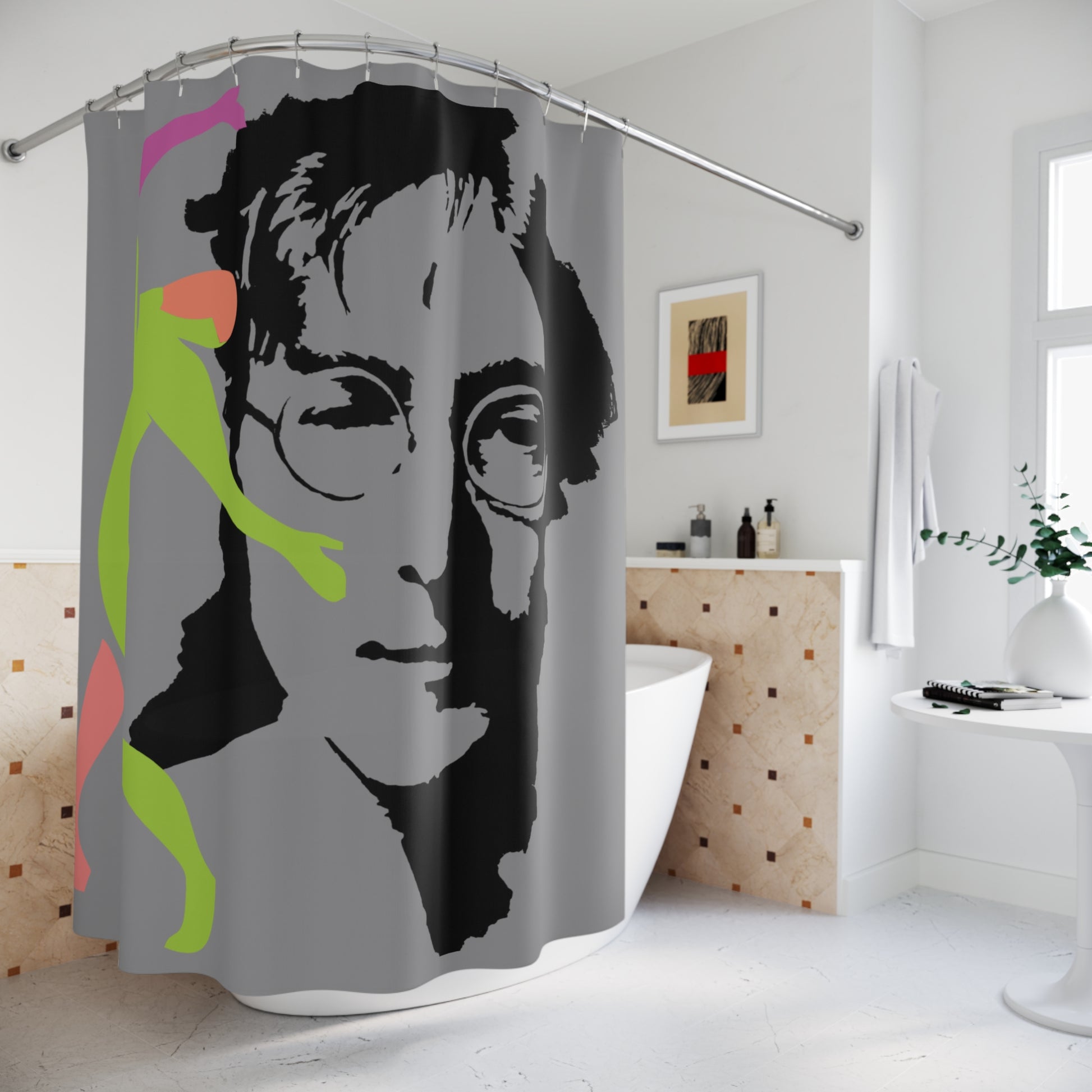This SOLSTICE shower curtain is here to add an original touch style to any bathroom with your designs. Inspired in the Matisse Solstice Dance and the idol John, was designed by AFANADOR. Made with highly durable polyester, this curtain stays like new for a long time to come and is a perfect printing area for your art. Please note: While polyester offers adequate protection against water, a liner might be necessary for full waterproofness.