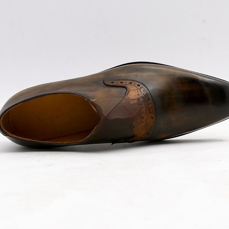 Cowhide Colorblock Handmade Calfskin Sole Lace Up Breathable Men's Shoes