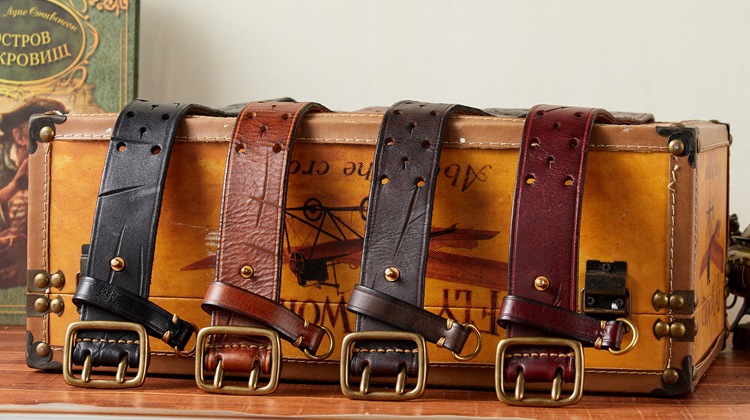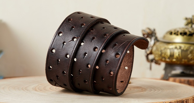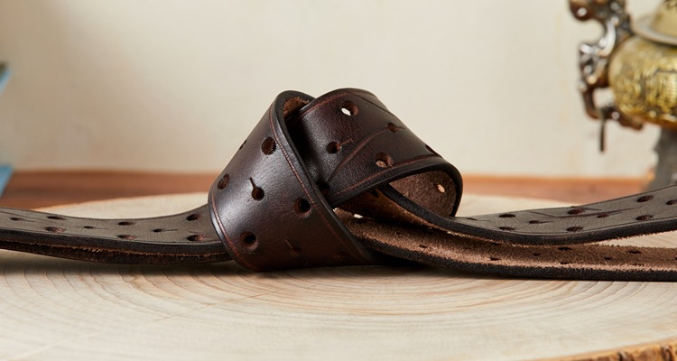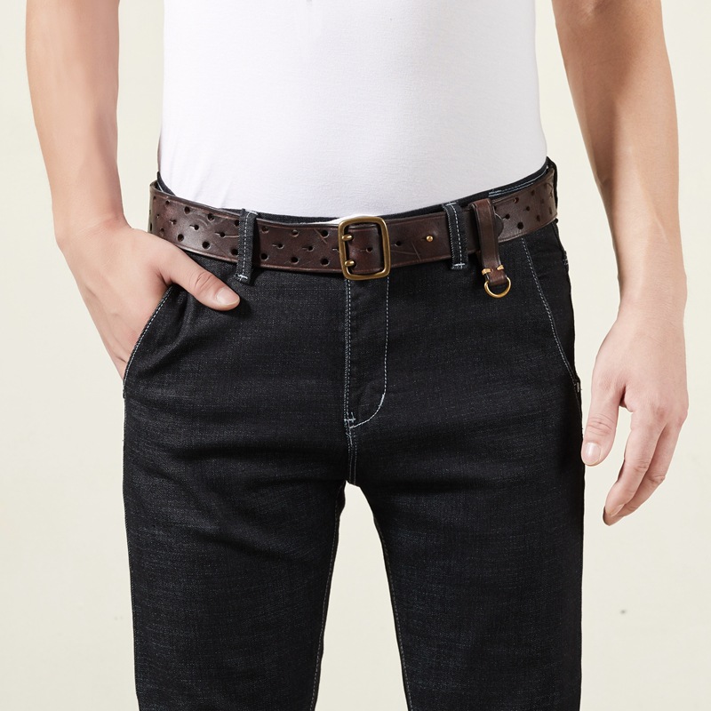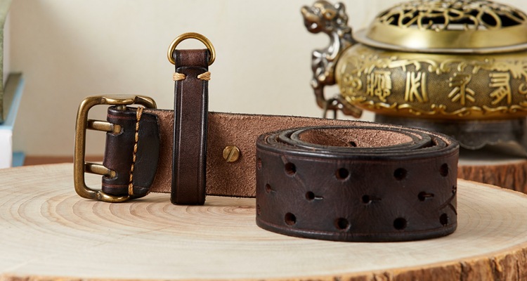 Double Needle Copper Buckle Men's Belt Retro Head Layer Pure Cowhide