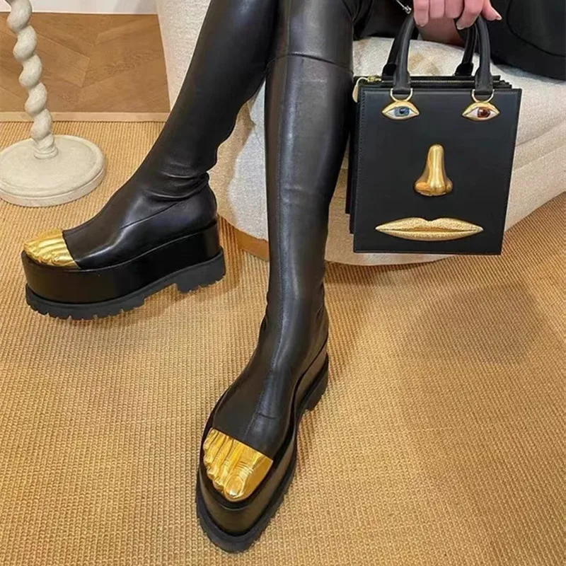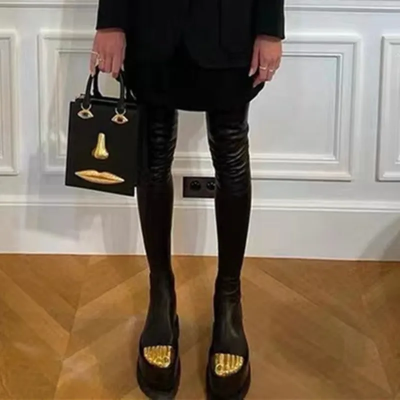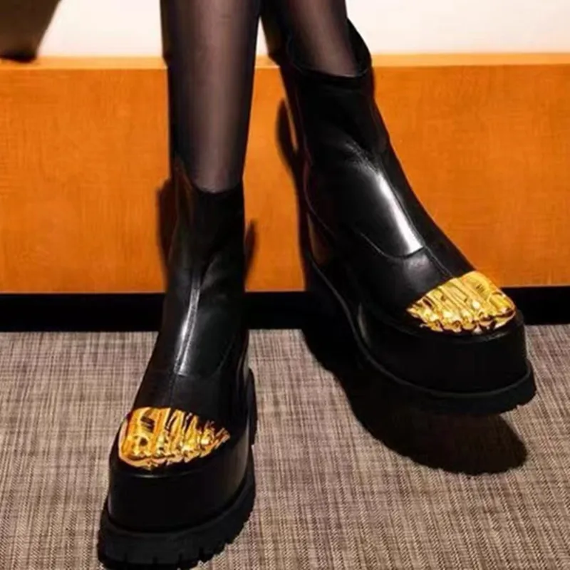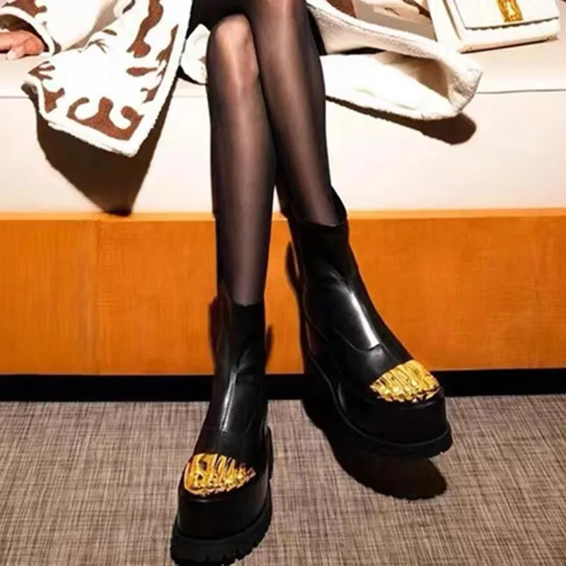 Artistic Surreal Fashion Women Ankle Boots Luxury Mid-calf Boots Designer Thigh High Boots Metal Decoration Female Shoes Platform Zipper-sid