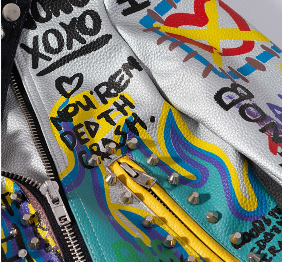 Fashionista Women's Graffiti Printed Contrast Color Motorcycle Suit