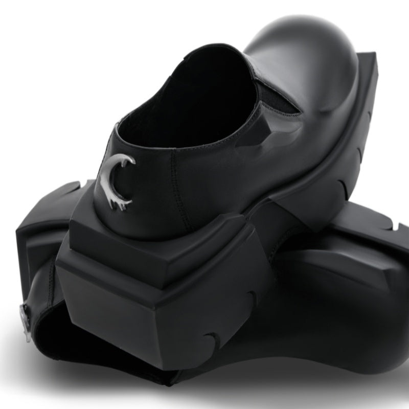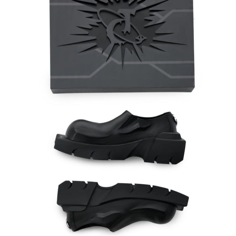 Infashion Round Head Derby Platform Shoes Devil Horn Cowhide Leather Low Top