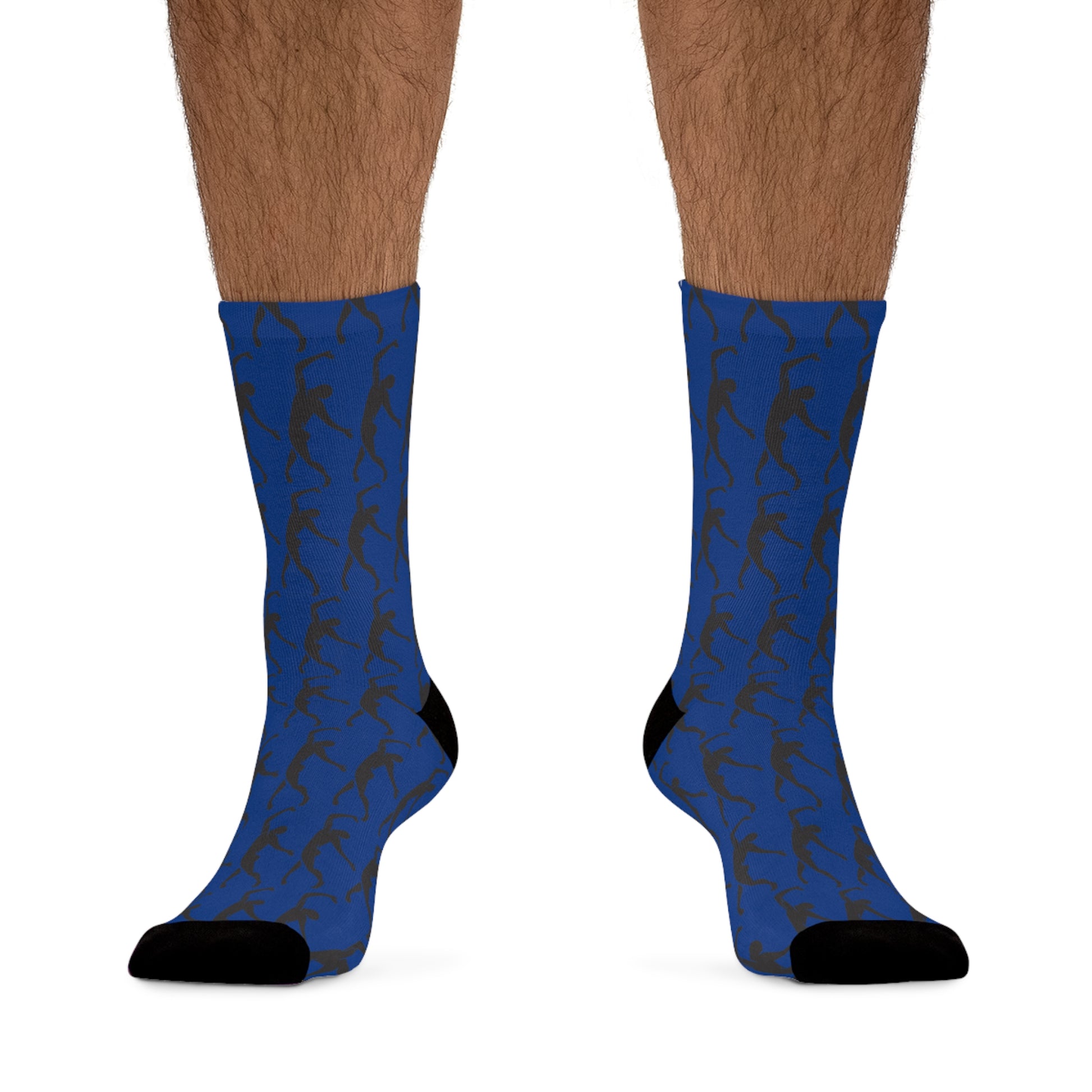 These sustainable socks are made using a proprietary blend of yarns specially sourced by Tribe Socks. They are 200 needle knit crew made from 58% Recycled Polyester 22% Nylon 15% Cotton and 5% Elastane. They are a true one size fits most, and are available up to size 12 Men's (U.S.). These socks have an unprecedented amount of stretch with durable print quality.
