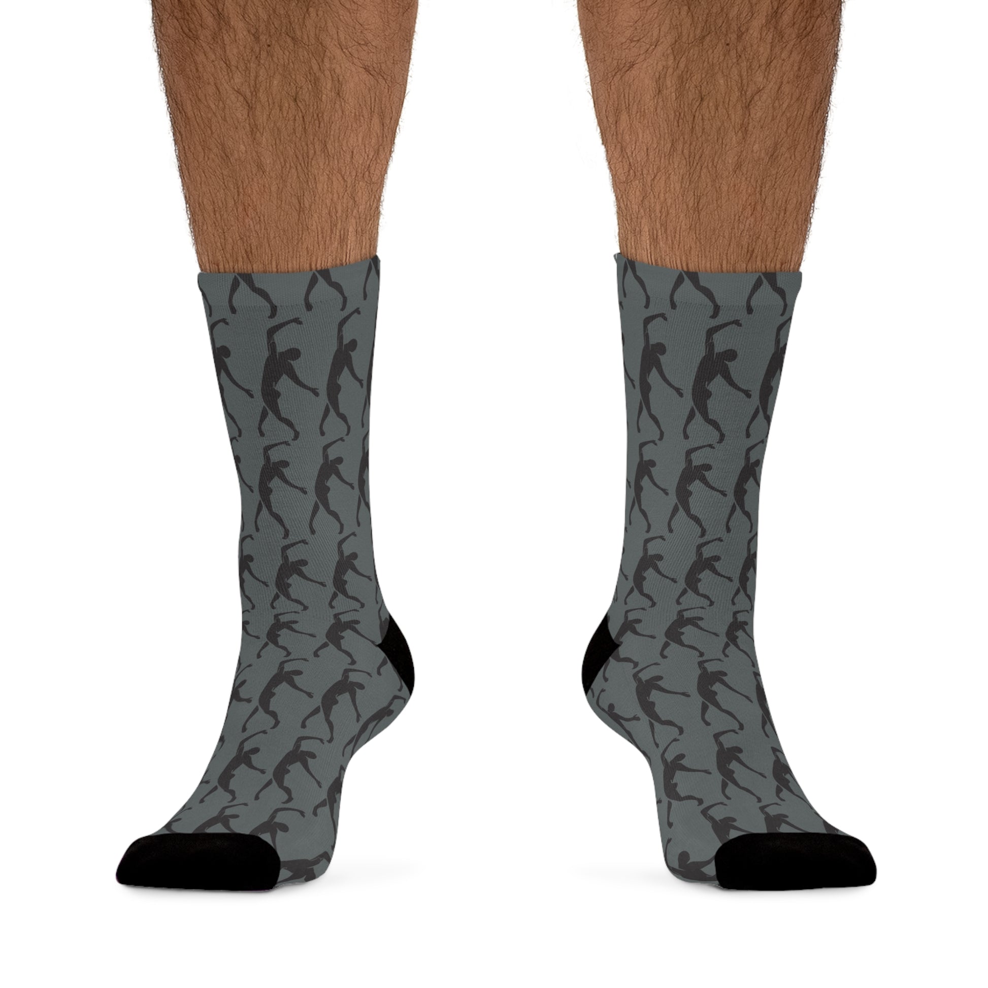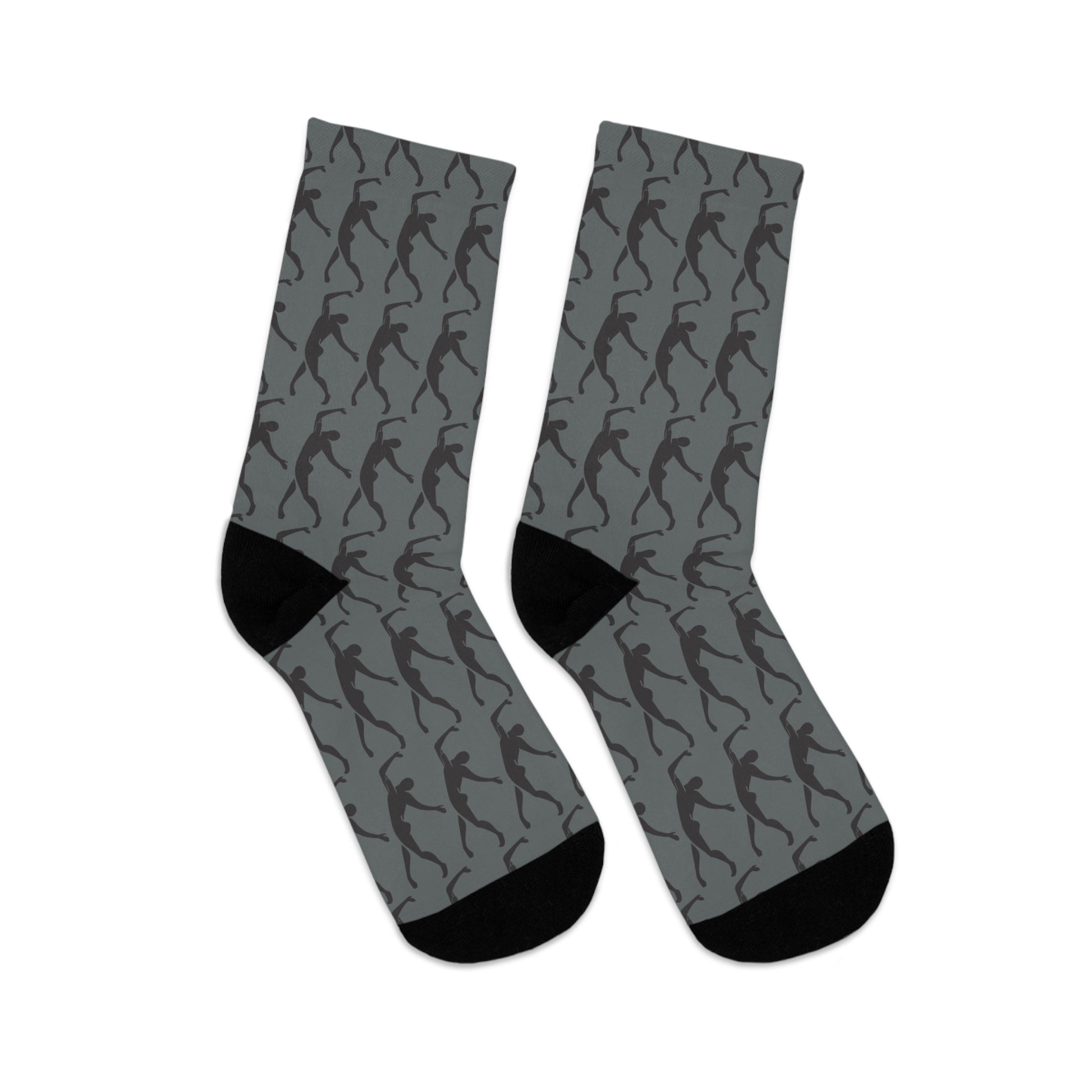 These sustainable socks are made using a proprietary blend of yarns specially sourced by Tribe Socks. They are 200 needle knit crew made from 58% Recycled Polyester 22% Nylon 15% Cotton and 5% Elastane. They are a true one size fits most, and are available up to size 12 Men's (U.S.). These socks have an unprecedented amount of stretch with durable print quality.