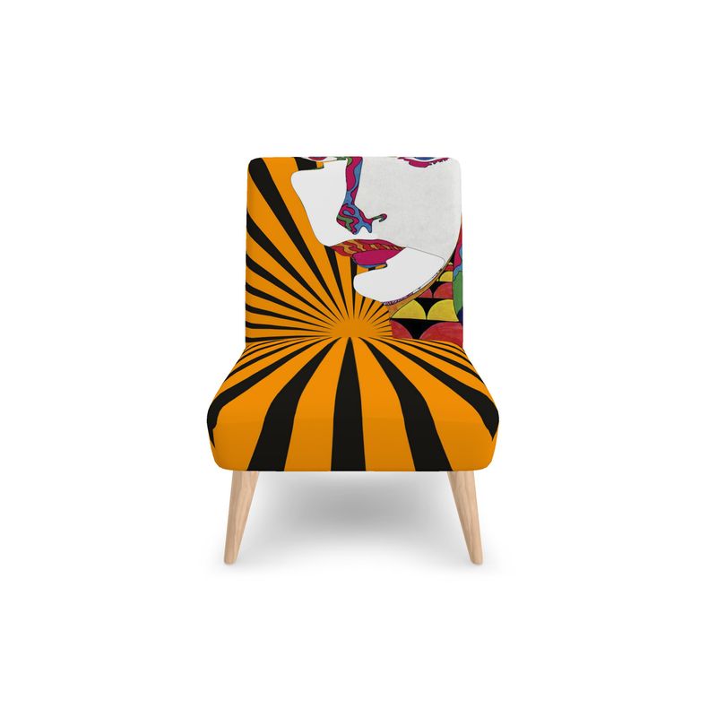 Trendy SOLSTICE armless chair with Pop Art face and Sun rays, designed by AFANADOR @afanadordesigner, which can be placed anywhere in your home, studio, or office, adding an original and avant-garde touch to your classic or minimalist space. Perfect as a gift when you want to impress someone special. Ideal as a pair for a waiting room or lobby, or as an essential element in the bedroom or TV or games room.Do you have an idea or need for branding or special design? We can produce it for you.email us products@solsticefest.shop