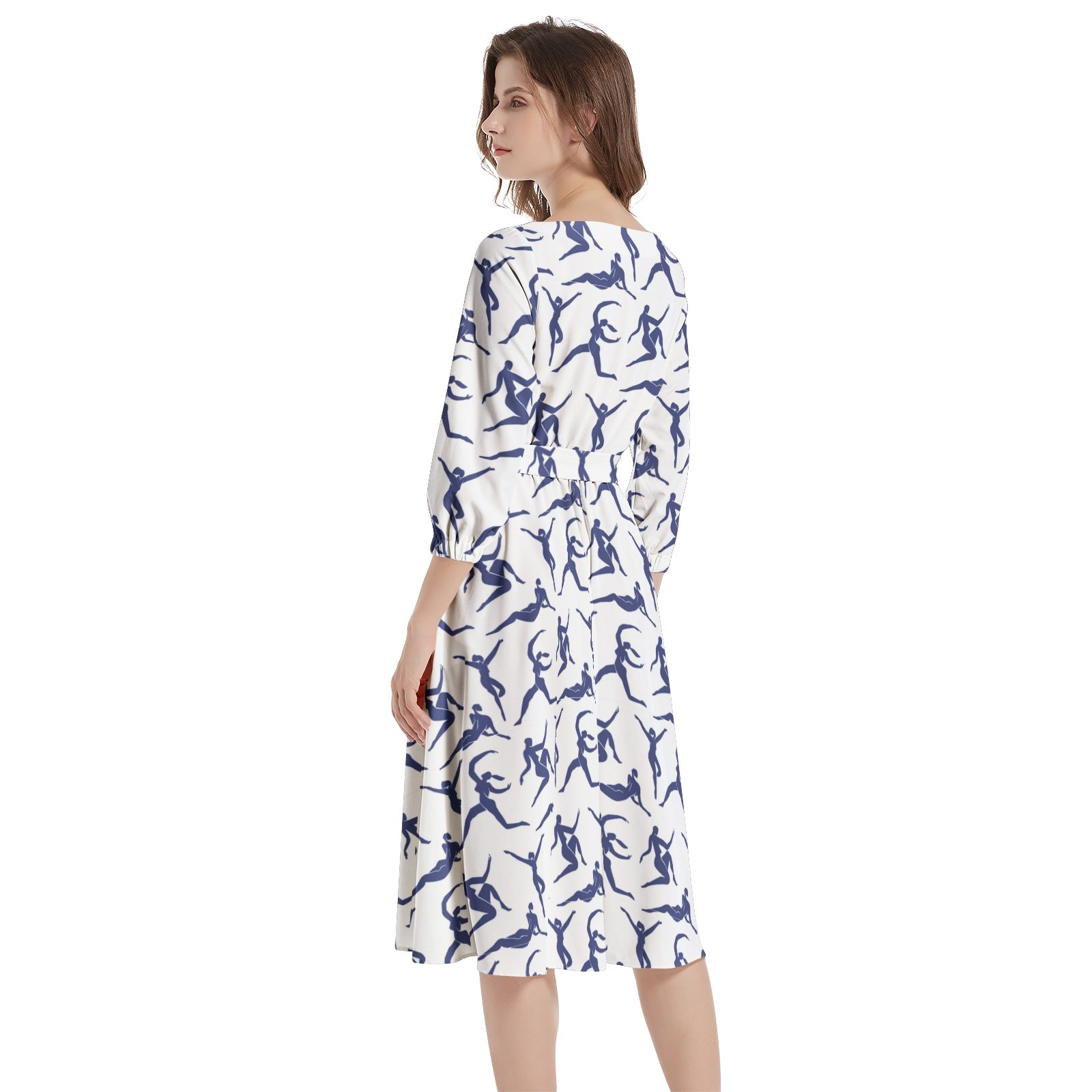 Solstice Matisse blue dancers Boat Neck Belted Flared Dress