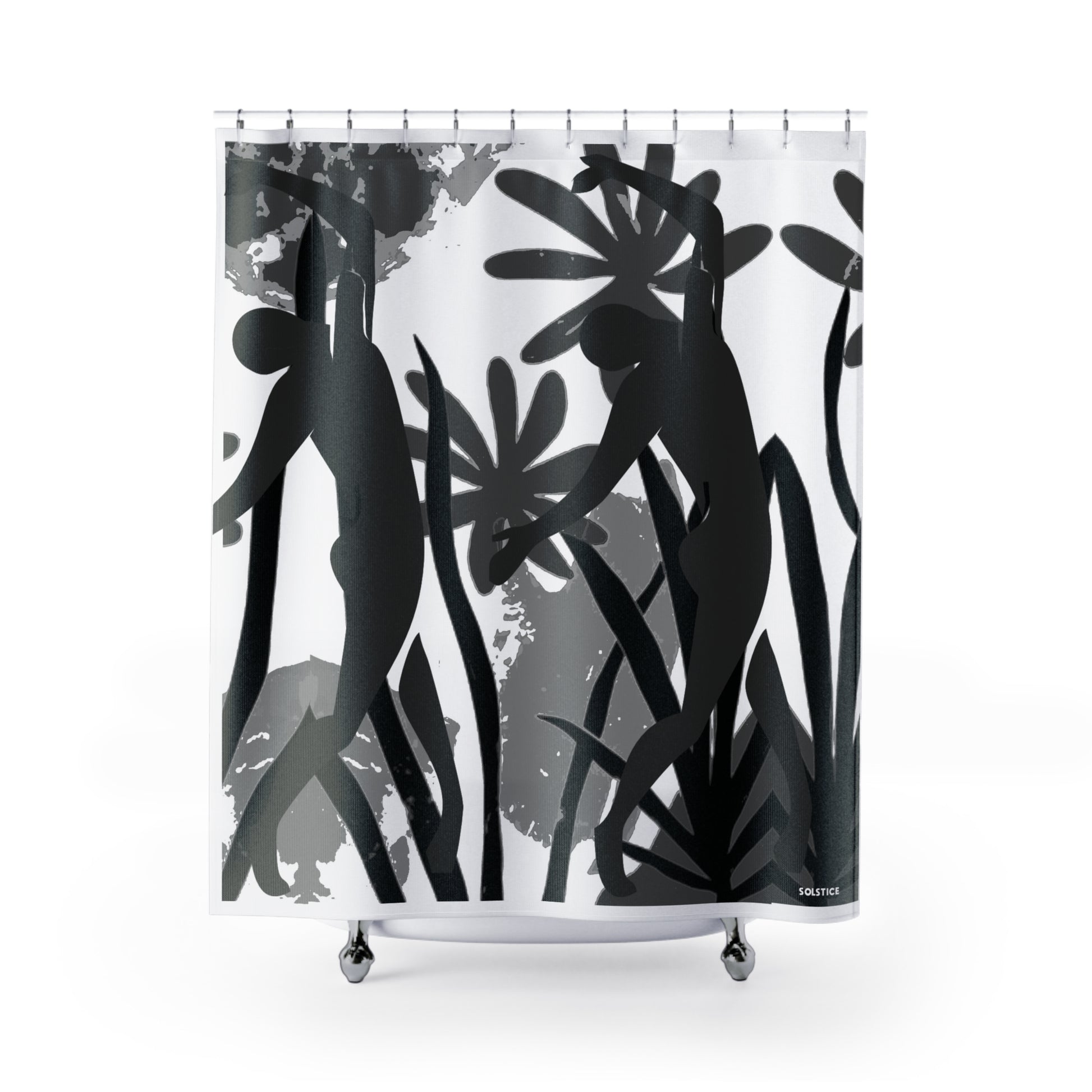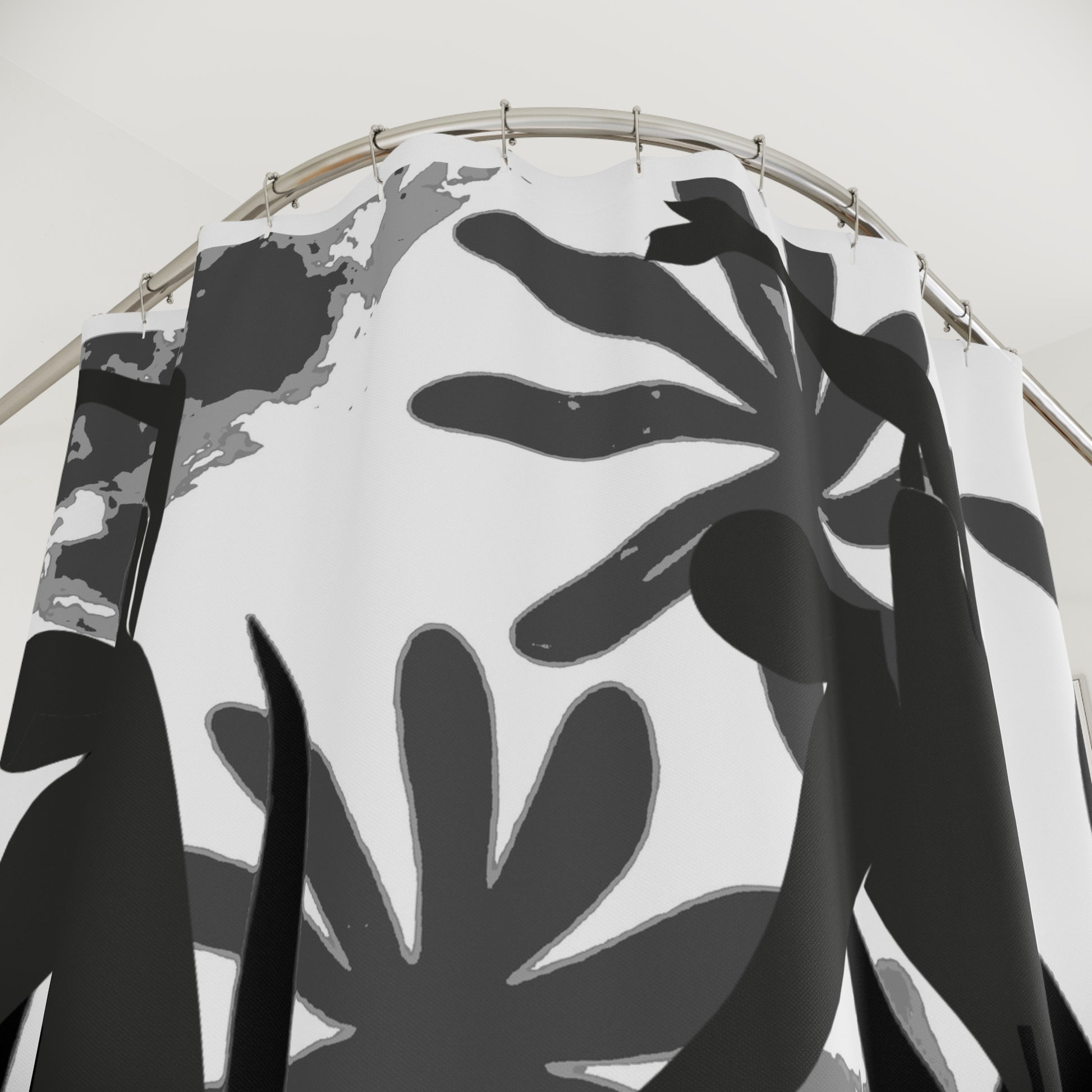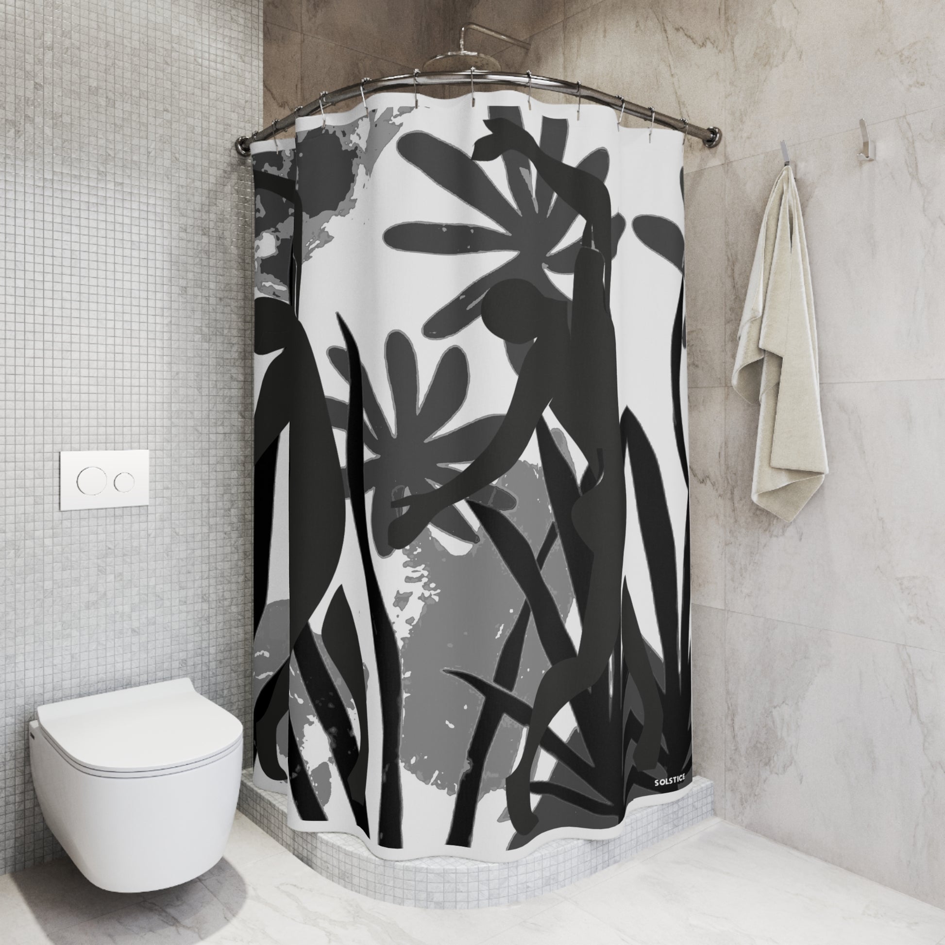 This SOLSTICE shower curtain is here to add an original touch to any bathroom with your designs. Made with highly durable polyester, this curtain stays like new for a long time to come and is a perfect printing area for your art. Please note: While polyester offers adequate protection against water, a liner might be necessary for full waterproofness.
