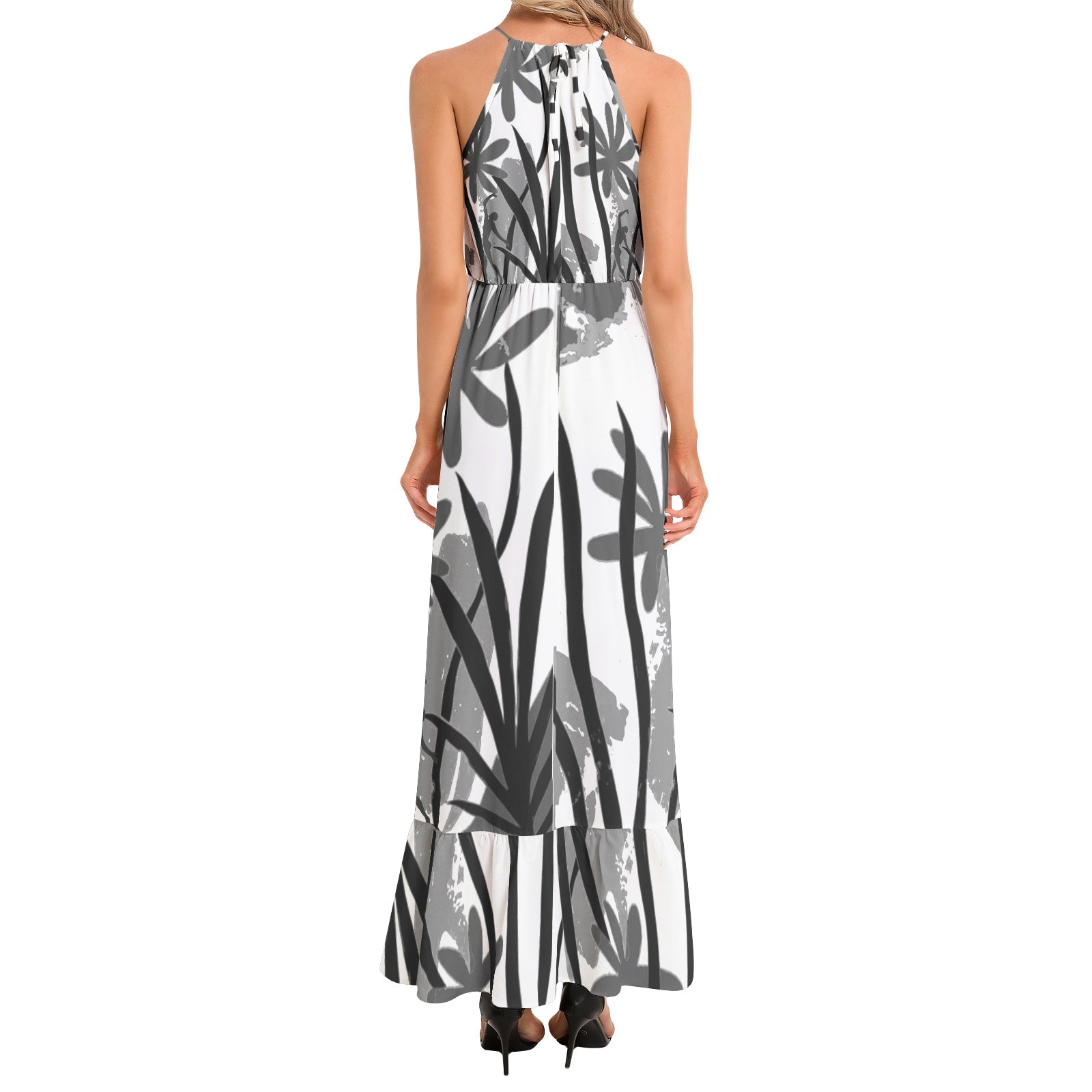 Sleeveless, Halter neck, Tie back, A-Line flared, Ruffle hem, Maxi Dress designed by AFANADOR