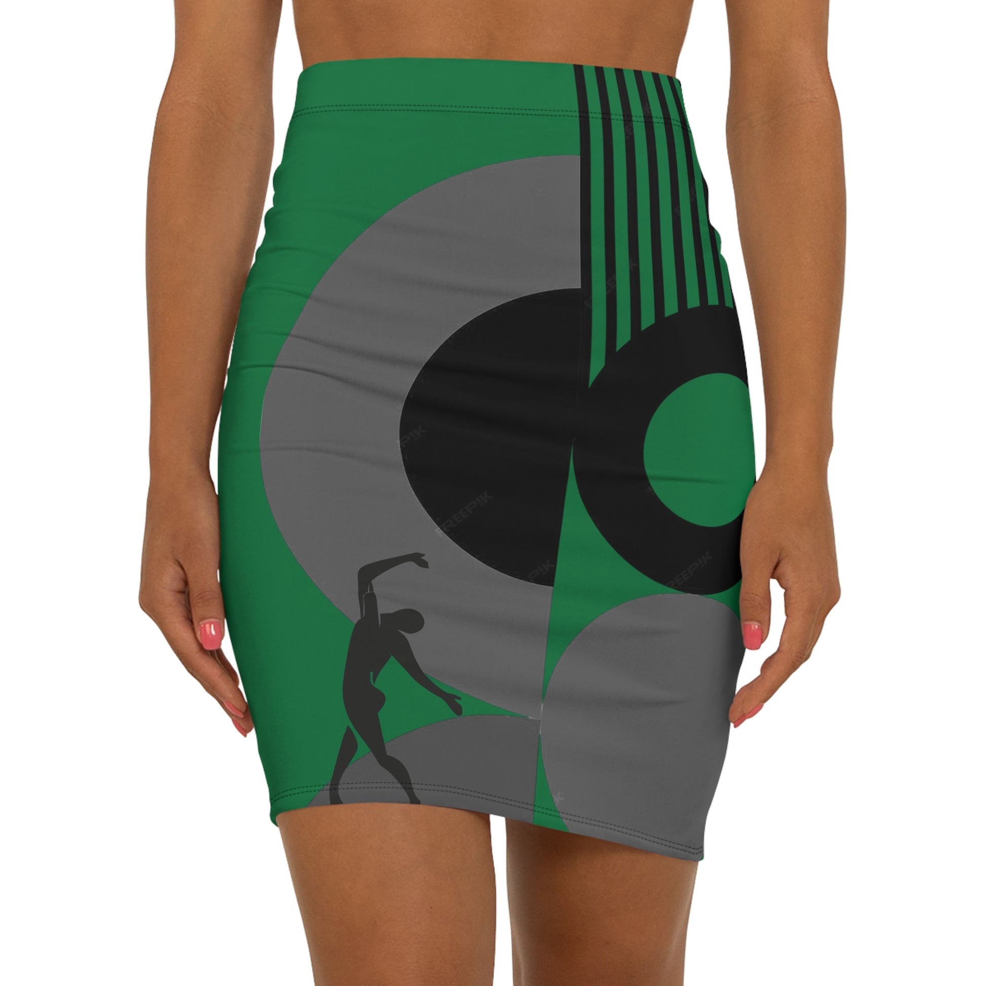 Women's SOLSTICE Bauhaus Mid-Waist red Pencil dark green Skirt (AOP)